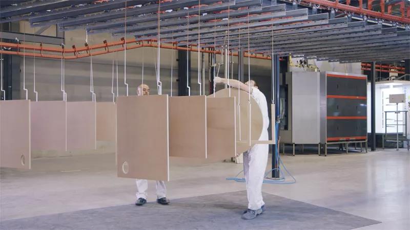 同时,巴德士斥资建立“水性漆静电往复旋杯自动喷涂系统”,完成“从实木白胚到水性漆喷涂,再到干燥成品”的智能涂装过程,见证了巴德士“方案可复制,生产可批量,环保看得见”的“油改水”整体解决方案。