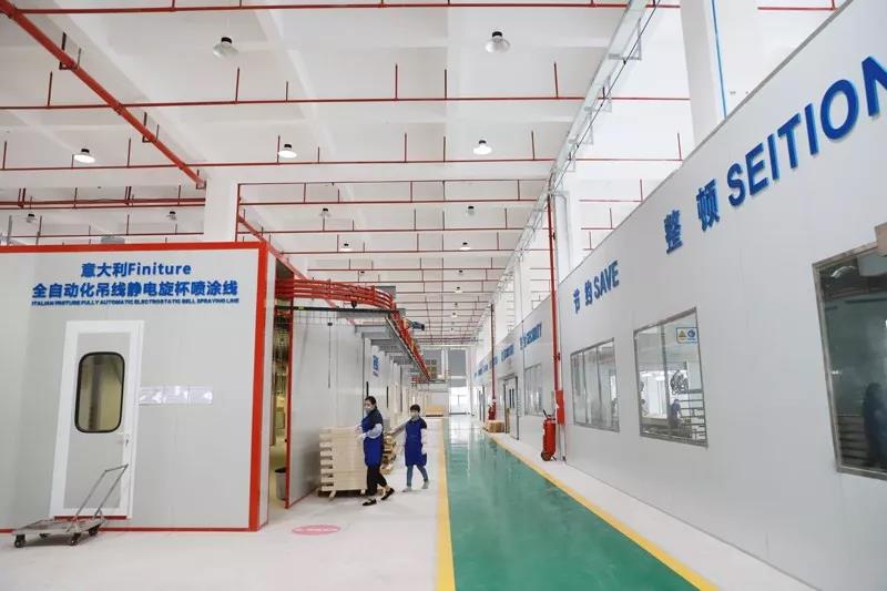 5.意大利FINITURE全自动化吊线、静电旋杯喷涂线;