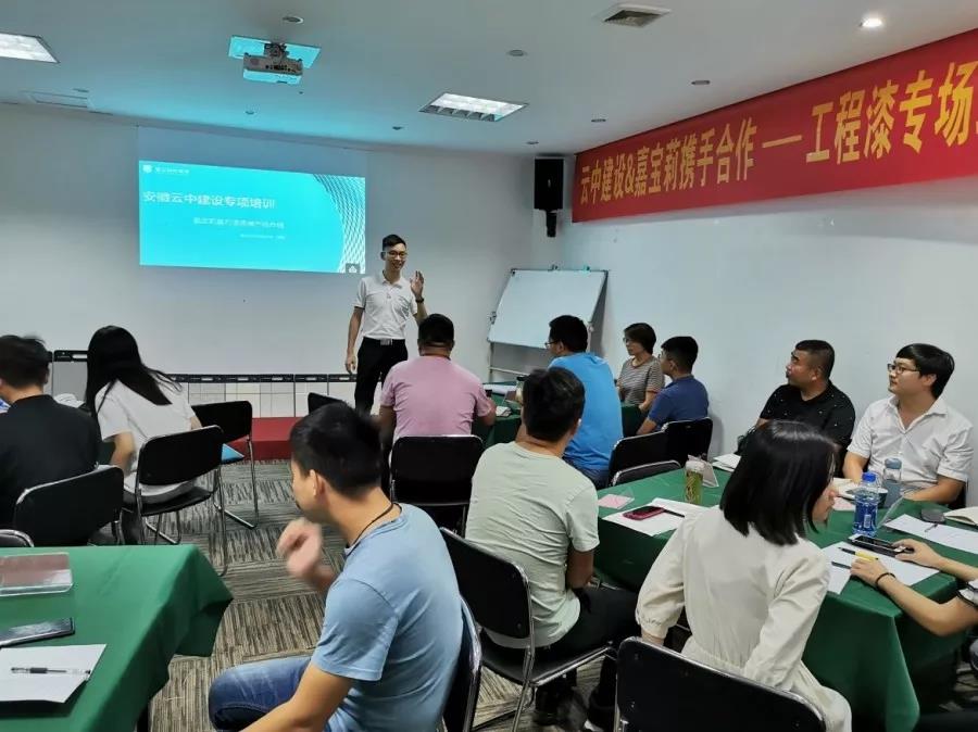 基于对经销商及区域市场切实了解的需要,8月30日至9月3日,由嘉宝莉工程漆事业部精英讲师组成的专业培训团队,奔赴安徽云中建设工程有限公司,进行了为期两天的专项落地培训。