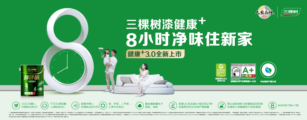 从企业形象到企业精神,三棵树以“健康、自然、绿色”为品牌打造总纲领,在人们心中建立了健康环保、阳光向上的消费联想。与此同时,在发展过程中,三棵树还积极打造绿色公益品牌,投身环保、扶贫、教育等公益事业,力求创造价值回馈社会,并通过生态文化、科技创新、智能制造、感动服务扛起大国品牌的旗帜,实现品牌报国,树立天地,绿满世界的伟大愿景。