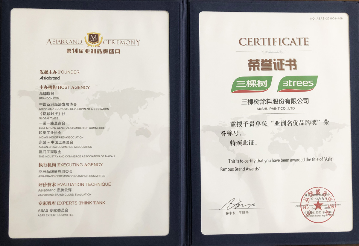 9月9日, “第14届亚洲品牌盛典” 在深圳举办,三棵树获评“亚洲名优品牌奖”,三棵树董事长兼总裁洪杰先生获评“新时代中国品牌创新人物”称号。