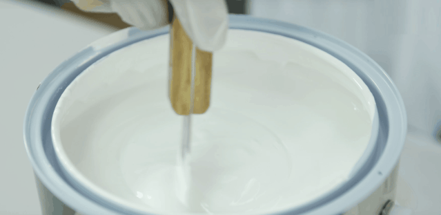 轻晃罐身,漆体浓稠度和粘度充足,是优质乳胶漆。