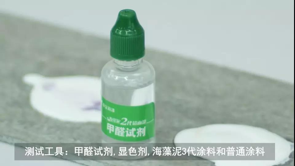 将同等份海藻泥3代和普通涂料中滴入甲醛试剂,搅拌至充分吸收。