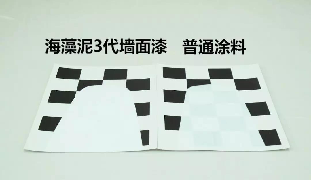 用海藻泥3代墙面漆的一侧完全看不到黑色的格子。