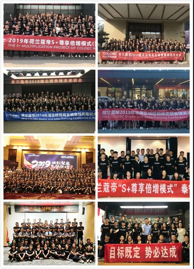 2019年3月-4月,荷兰蔻帝开启巡回经销商会议,以“五大倍增 两大保障”为核心,向各区域的经销商介绍2019年荷兰蔻帝的中国市场规划,五大倍增即团队、店面、服务、仓储、销量倍增,两大保障即产品研发及品质保障,激发各区域经销商的热情与信心。