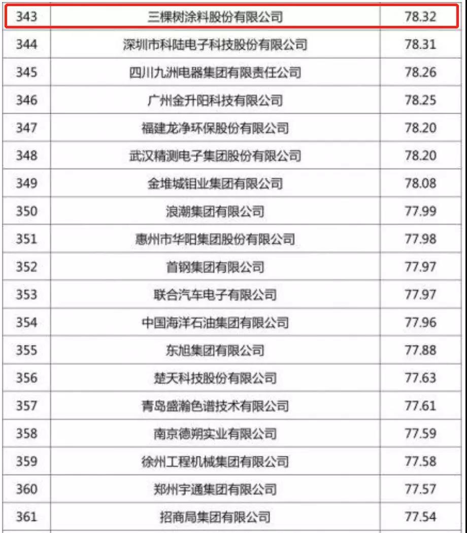 7月22日-25日,第七届中国市场营销国际学术年会暨首届中国创造展在广州举行。在首届中国创造展上,对中国优秀的创造产品和品牌进行集中展示,并首次发布中国企业专利500强名单,三棵树以78.32分实力入榜,此次入榜的化学原料和化学制品制造企业有31家。