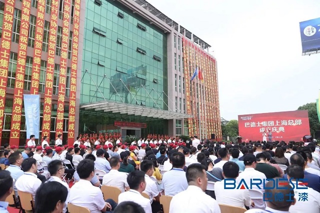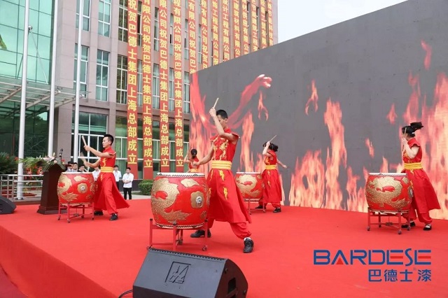 成立庆典于上海巴德士化工新材料有限公司举行。在战鼓声声中,迎来了政府领导、中国涂料行业领导、来自全国各地的企业家朋友、优质经销商代表、以及多家权威行业媒体代表,纷纷亲临现场恭贺庆典圆满成功!庆典以振奋人心的古沙场“战鼓”开场,为正大踏步向世界迈进的巴德士鸣鼓助威!寓意双总部战略下的巴德士集团将以昂扬的斗志,以沸腾的热血,以必胜的决心,奋勇征战国际沙场。