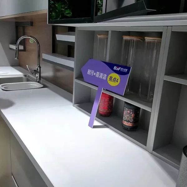 巴德士集团博士家居本次展馆设计别出心裁,以“绿色环保”的设计主题,通过现代感的场景式模拟家居体验,展示了巴德士木器粉末涂料在木器上的成熟应用,实现橱柜家具系列、卫浴家具系列等多种木制家具的涂装,实现丰富的表面色彩效果,实现粉末透明效果、粉末底+水性面的工艺搭配和平面粉效果等。
