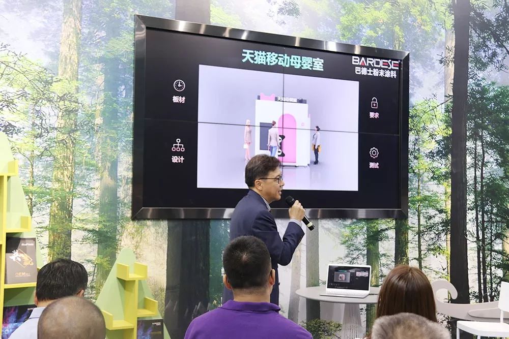 随后,木器粉末应用专家洪剑勇先生现场为大家分享了多个粉末木制家具OEM的经典案例,其中以宜家的最有代表性,而“天猫移动母婴室”项目汇聚了粉末木制家具优异的性能特点及其实用性。