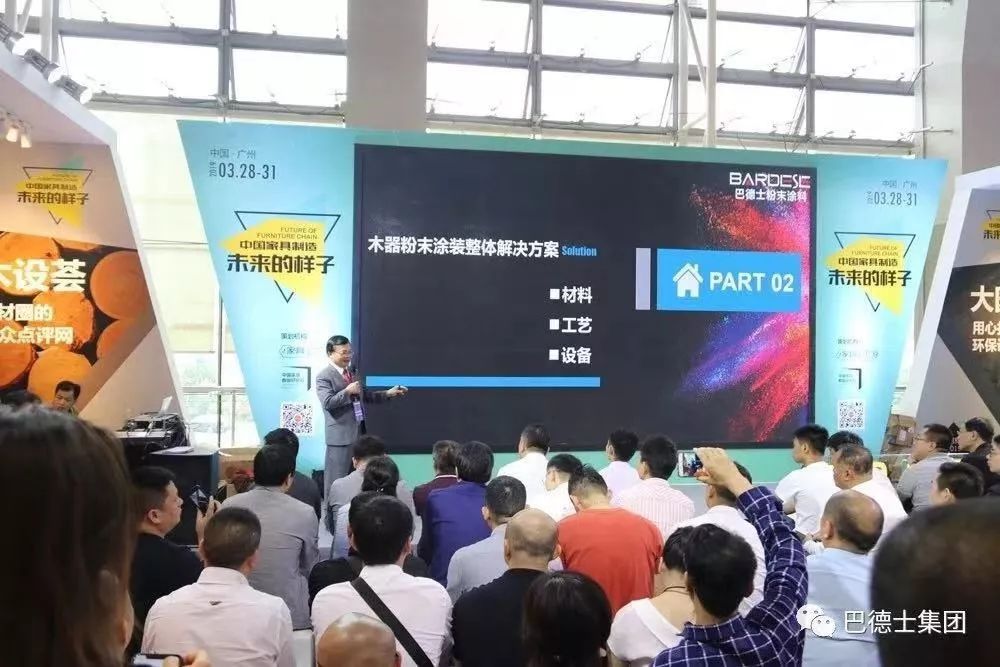 近年来,随着“环保”革命风暴的越发严谨,各项政策法规的不断推出,“漆改粉”成为环保新选择。在今年3月28日—31日,巴德士集团在广州琶洲国际会展中心举行的“中国家具制造· 未来的样子”2019趋势发布周上,提出“漆改粉,木器涂装环保宣言”的发展口号。方学平董事长在发布会上重点讲到:在这场“环保”革命中,家具企业面临着诸多痛点,巴德士可以提供整套木器粉末涂装解决方案,通过提供材料、工艺+设备、涂装服务,帮助家具企业解决上述各类难题,强劲助力家具行业快速推进“漆改粉”,助力环保家具事业更上一层楼。