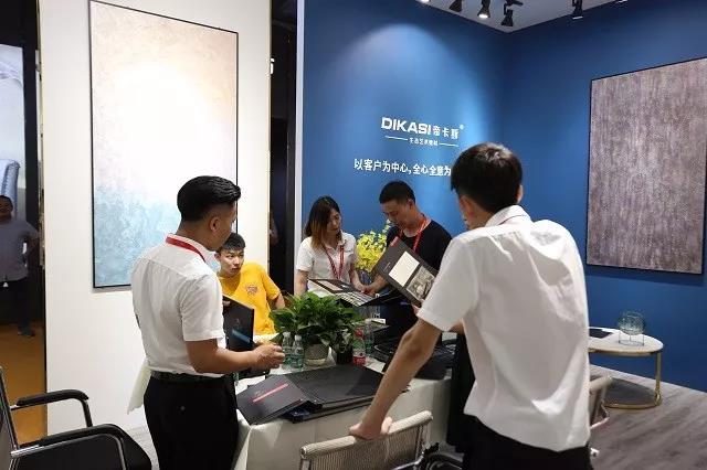 展会期间,帝卡斯&威尼托VENETO展馆前人潮川流不息,很多人被帝卡斯生态艺术壁材惊艳到,也看到了艺术涂料的发展前景,为帝卡斯驻足,更有现场签约、闭馆后马上到帝卡斯总部(顺德)参观展厅、签约,加入帝卡斯大家庭共同发展。