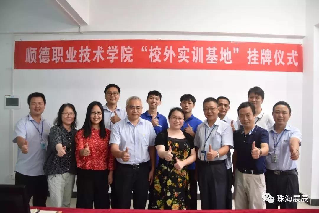 当天,顺德职业技术学院轻化与材料学院院长陈燕舞女士率学院办公室主任霍应鹏先生、周强老师、李国庆老师、梁敏仪老师一行5人专程赶到珠海展辰,举行现场授牌仪式,并对珠海展辰进行了实地参观考察。