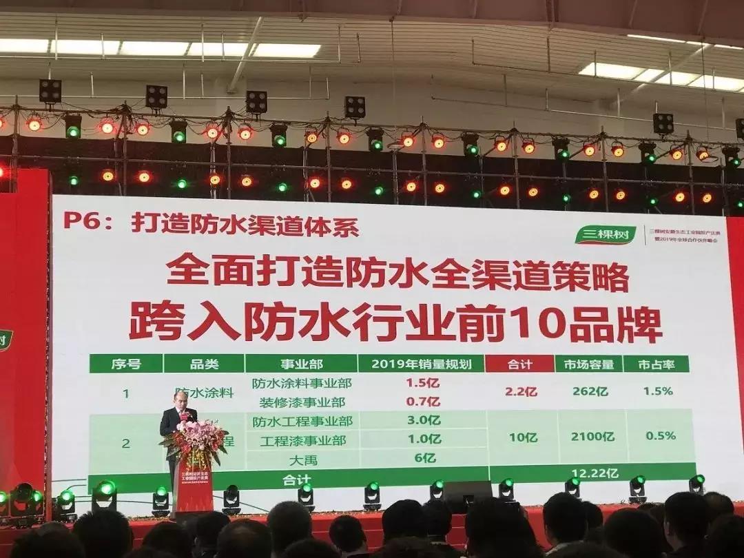 所以,基于对未来市场的发展前景和信心,三棵树制定了防水项目五年规划:2019年目标预计将跨入防水行业前十,未来战略目标将跻身防水行业前三甲。根据目前我国防水市场来看,前十位企业销售规模都在10个亿以上。