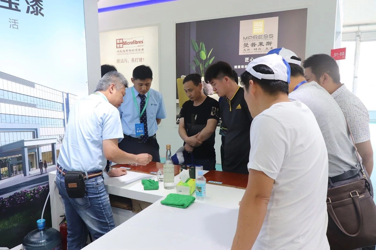 大宝漆作为国家高新技术企业,紧扣“涂装黑科技”的主题,在成都家具展重点展出了公司最近几年研发突破的家具漆新工艺,包括:浅色科技木皮耐黄变高硬度系列、1度左右的PU全哑面漆系列、水性双组份底面着色耐高温系列、UV底面着色系列和格丽斯着色层次感强系列等,受到了参展的家具厂、涂料同行的关注。尤其是浅色科技木皮耐黄变高硬度系列和1度左右的PU面漆全哑涂装系列,吸引了不少家具厂企业代表驻足观看,了解产品信息,纷纷表达了合作意愿。
