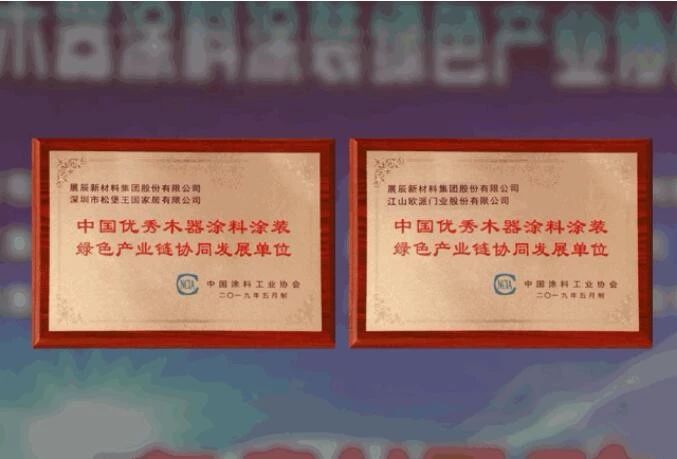 《涂料经》获悉,5月29日,“第十三届中国国际水性木器涂料暨环境友好型木器涂料发展研讨会”在东莞召开,其中,在“2019中国优秀木器涂料涂装绿色产业链协同发展单位”表彰环节,展辰涂料凭借优秀的环保涂装解决方案和完善的服务,与江山欧派木门、深圳市松堡王国在环保木门以及儿童家具领域保持着深度合作,获得行业一致关注与认可,分别获得授牌。