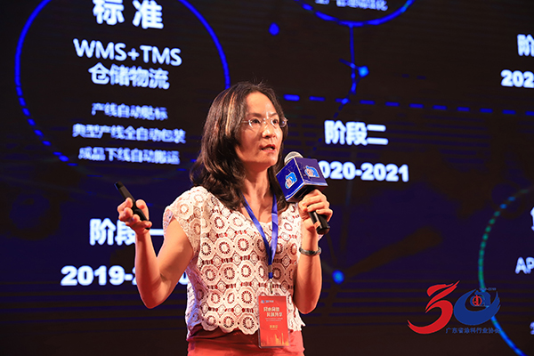 嘉宝莉化工集团股份有限公司代表集团公关部总监龙平女士出席了此次会议,围绕企业简介、规划蓝图、阶段概述和经验分享了嘉宝莉智能工厂构建落地方案。她表示嘉宝莉智能工厂期发展路径大致分为四个阶段。阶段一:WMS+TMS—生产作业标准化、流程化、自动化,阶段二:MES-生产过程管理精细化、可视化,阶段三:APS高级排程-智能排产算法最优化,阶段四:MCS—多工厂供应协同、利润最大化生产、采购订单分配模型。