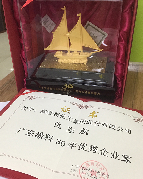 而集团董事长仇东航凭借其对涂料行业发展的贡献,荣获“广东涂料30年优秀企业家”称号。