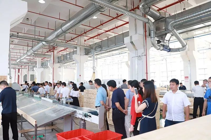来宾们走进大规模的水漆实木家具与粉末木制家具木工备料、机加、机砂车间,感受其标准化生产,高效率出货,高品质保证。有完善的水漆和粉末涂料共享涂装模式和强大的木工实力作保证,让博士家居有足够的信心成为水漆实木家具与粉末木制家具专业OEM服务商,有足够的底气做博士级别的OEM!