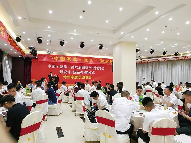 博士家居,作为江西省赣州市南康区为突破制约家具产业发展的环保瓶颈而着力打造的现代家居示范工程,和推动、引领南康家具产业环保升级、转型发展、创新发展的龙头企业,在白天的参观活动结束后,积极承办了本届家具产业博览会的欢迎晚宴。