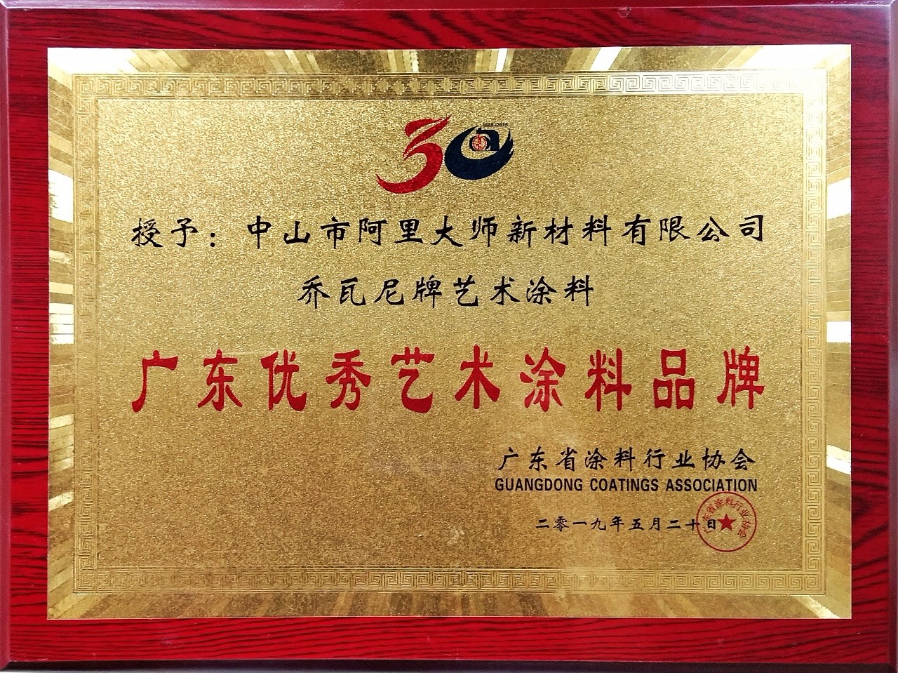 5月20日,在广东鹤山举行的“广东省涂料行业协会成立30周年颁奖盛典暨第三次会员代表大会”上,中山市阿里大师新材料有限公司荣获“广东涂料30年科技创新型企业”、“广东涂料30年优秀艺术涂料品牌”两项殊荣,阿里大师新材料终端培训部主管李星丽出席了颁奖仪式。