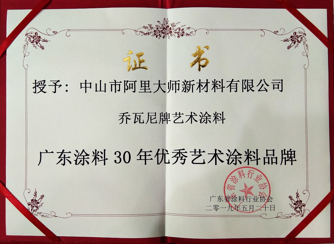广东涂料30年“优秀艺术涂料品牌”的颁奖词这样写道:“艺术涂料在中国仍处于成长期,潜力巨大的艺术涂料市场为艺术涂料企业提供了绝佳机会,他们精准出击,紧抓机遇,不断探索,精益求精。他们用极具“艺术”质感的产品、出色的产品“服务”,打开市场局面,同时也开辟了一片独特的新天地!”