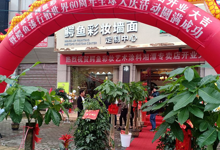 涂料经讯 继鳄鱼彩妆墙面定制中心(湖南岳阳红星美凯龙店)开门营业后,鳄鱼漆再接再励,在湖南地区再布局,近期,鳄鱼彩妆墙面定制中心(湖南湘潭店)又盛大开业了!开业当天,人声鼎沸,经销商夏总在致辞中提到:“与鳄鱼漆的合作,是当地开启家装整体服务的重要一笔,我们旨在将更加多姿多彩、健康环保的艺术涂料产品展现在消费者眼前,呈现出家居生活的品质装修与生活氛围。开业期间优惠多多,想要装修的朋友记得过来坐坐!”