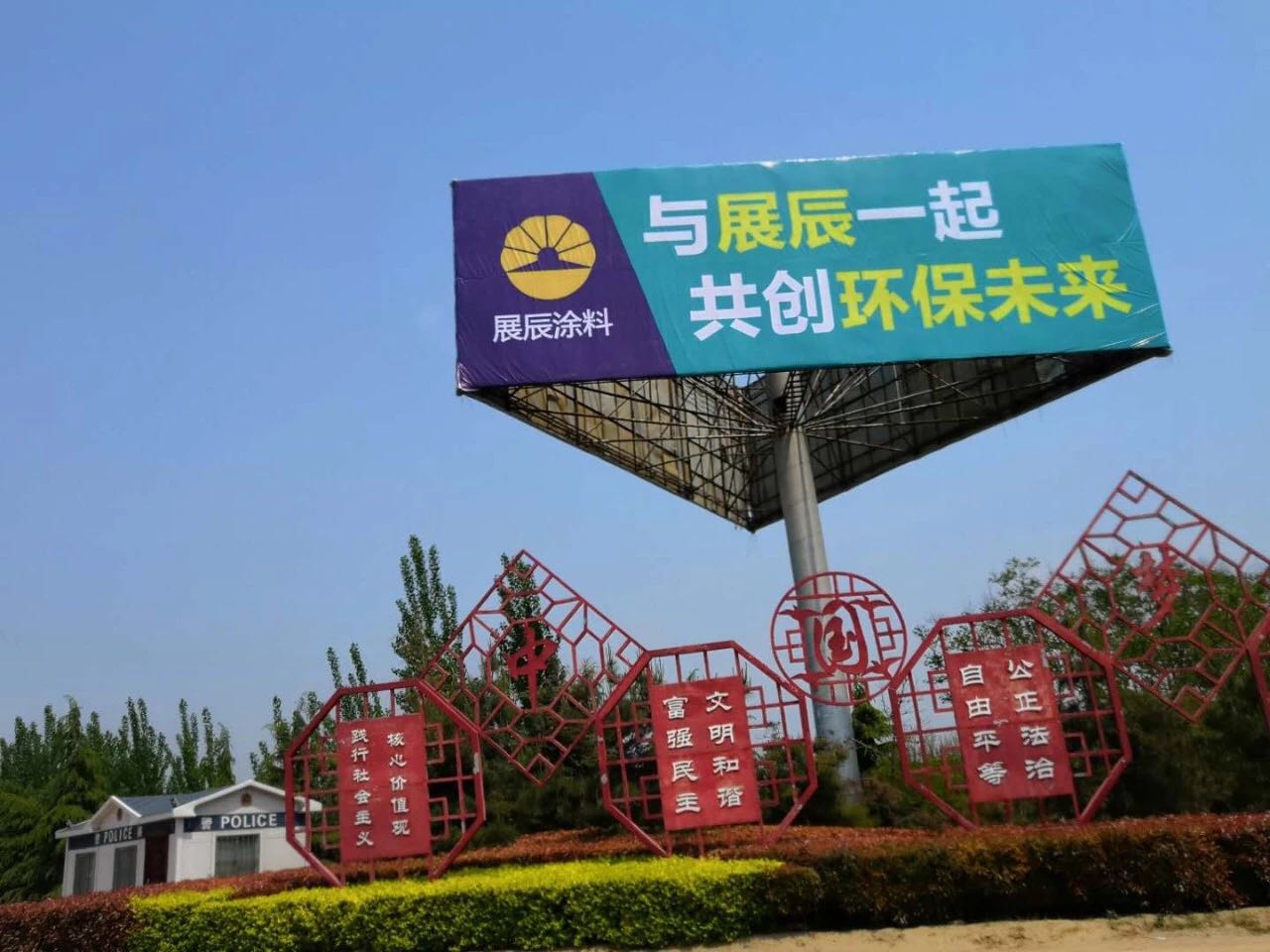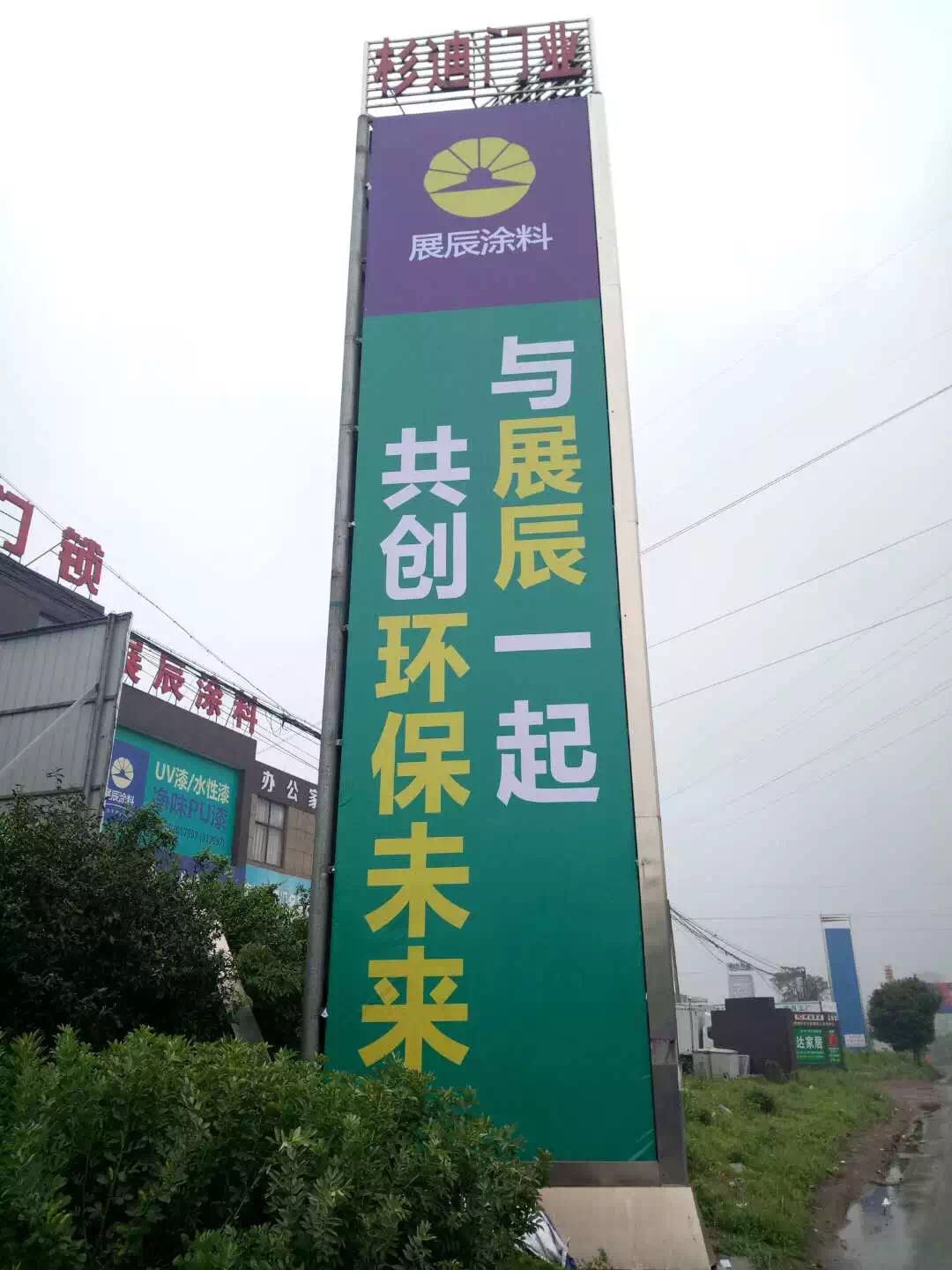 近日,《涂料经》从展辰集团获悉,该公司以“与展辰一起,共创环保未来”为宣传主题的户外广告陆续上线,包括高速公路、家具产业园、墙体、楼体等。