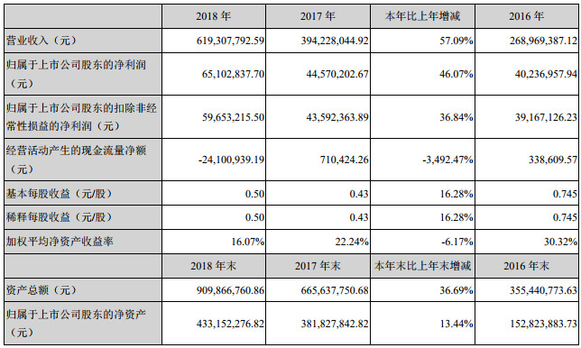 3月29日,凯伦股份(300715)发布了2018年年度报告。报告称2018年度公司实现营业收入61,930.78万元,同比增加57.09%;营业总成本55,073.44 万元,同比增加60.62%;实现营业利润7,616.83万元,同比增加45.17%,利润总额7,495.26 万元,同比增加42.82%;实现归属于上市公司股东的净利润6,510.28万元,同比增加46.07%。报告期末总资产为90,986.68 万元,较期初增长36.69%,归属于母公司所有者权益为 43,315.23 万元,较期初增长13.44%。