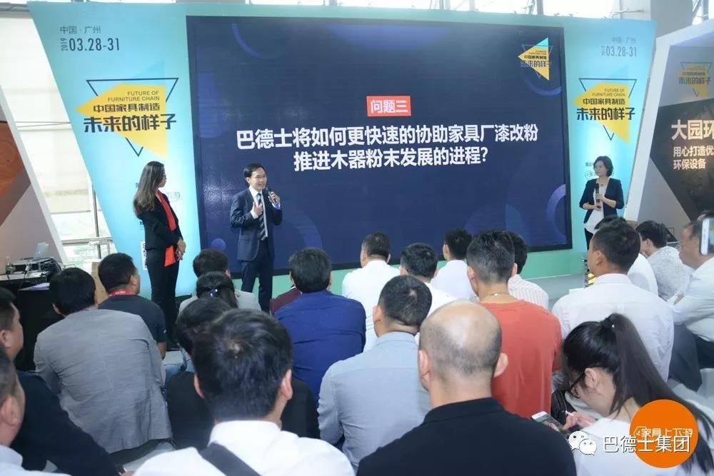 为了更好地表达对来自全国各地的来客的真诚感谢,现场特意准备了“对话环节”,由巴德士集团粉末涂料事业部总经理方博士、技术总监孔博士、家具上下游邵博士一起,与现场观众进行互动,专业地解答大家的问题。其中更是重点解答了三大问题:哪些家具厂适合粉末涂装?相比于大热的油改水漆改粉有哪些优势和劣势?巴德士将如何更快速的协助家具厂漆改粉 推进木器粉末发展的进程?让来客们满载而归。