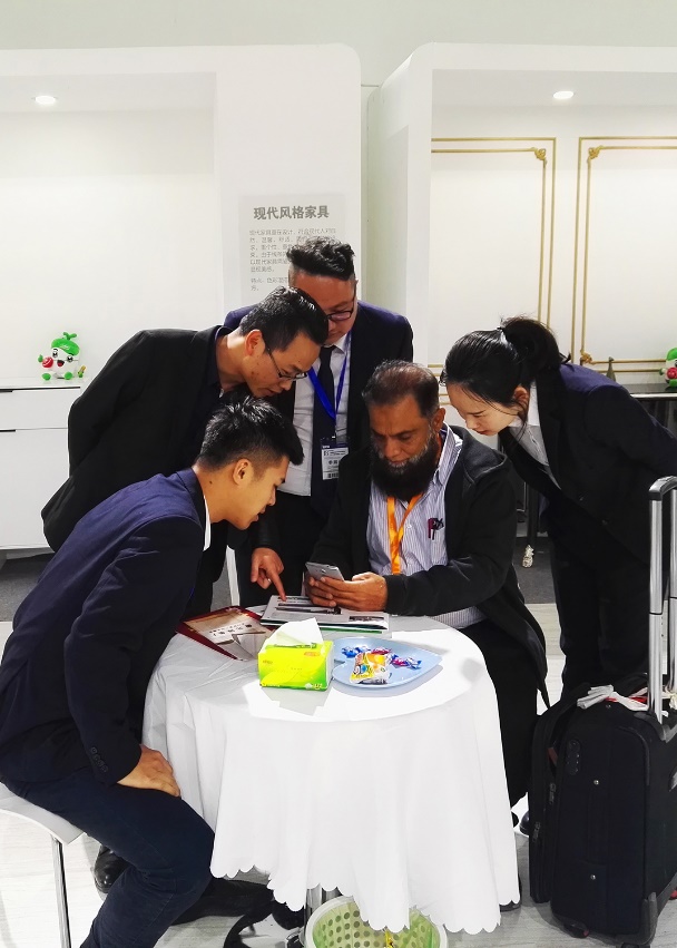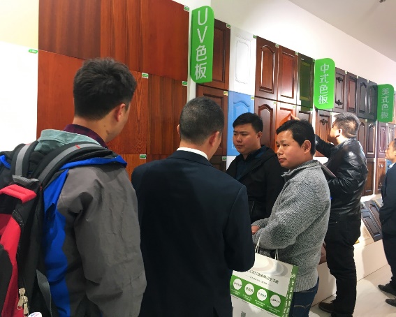 除了展出木门及主流家居风格,展会还重磅推出了三棵树健康家具漆涂装解决方案—油改水涂装解决方案、涂装定制解决方案、木门环保涂装解决方案、机械涂装解决方案、区域家具涂装CMF解决方案等五大涂装解决方案。特别是木门环保涂装解决方案更是标新立异,此方案使木门耐冲击更强、表面效果层次感最突显、质地手感更滑爽。独具个性涂装解决方案不仅满足了客户对现今棘手问题的解决,也吸引了众多客户的驻足及了解,还吸引到外国友人纷纷前来咨询。
