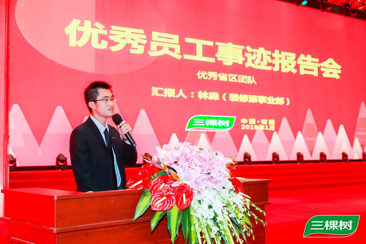 27日下午,三棵树2018年度优秀员工事迹报告会举行,向优秀学习,比优秀更优;与强者对标,比强者更强。9位三棵树精英代表从团队建设、区域市场规划和核心举措等方面进行分享,得到全体员工的点赞。