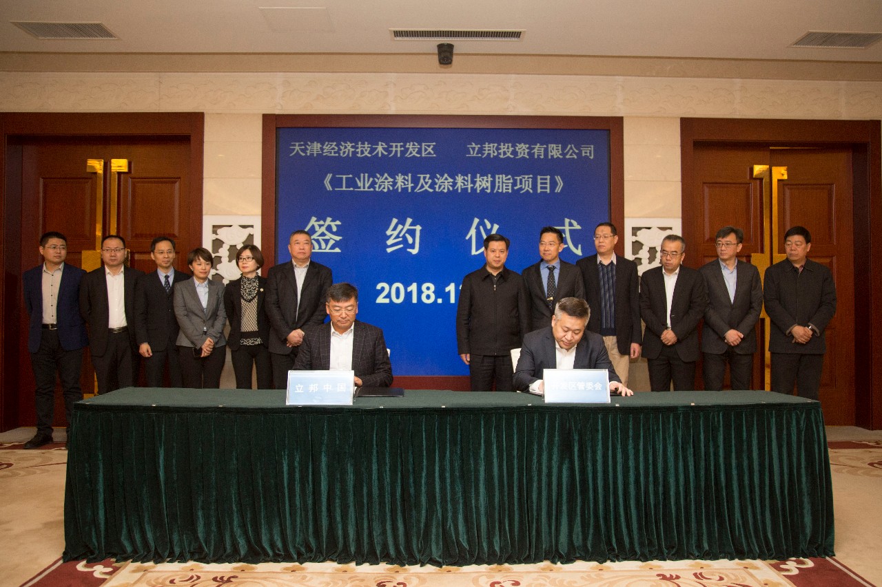 涂料经讯 12月12日,立邦投资有限公司与天津经济技术开发区管委会在天津滨海新区举行了立邦新建工业涂料及涂料树脂项目的投资协议签约仪式。天津经济技术开发区管委会书记兼主任郑伟铭、副主任王威,立邦中国工业涂料事业群总裁胡朝晖、生产供应链副总裁罗木顺等一并出席了签约仪式。