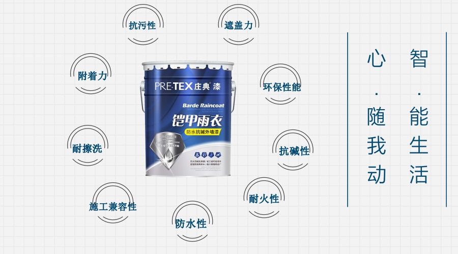 据了解,目前庄典漆·铠甲雨衣防水抗碱外墙漆在施工性、低温稳定性、耐碱性、耐水性、抗泛盐碱性、透水性等方面均符合国家标准。