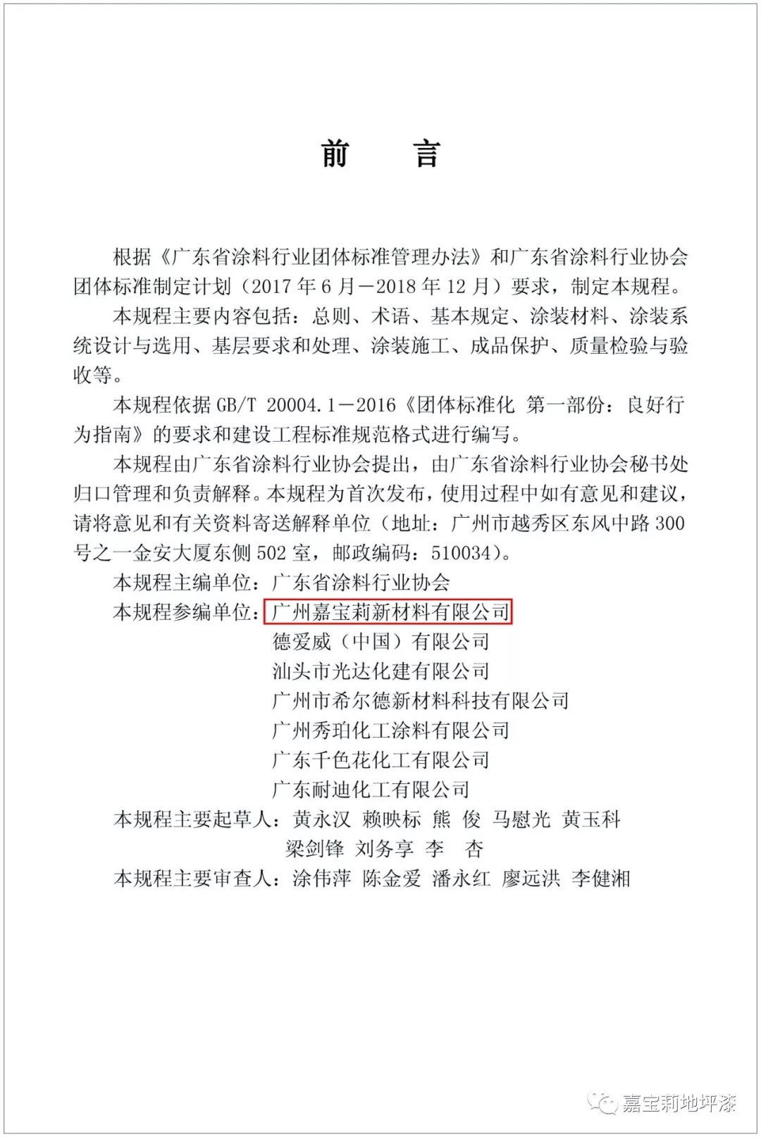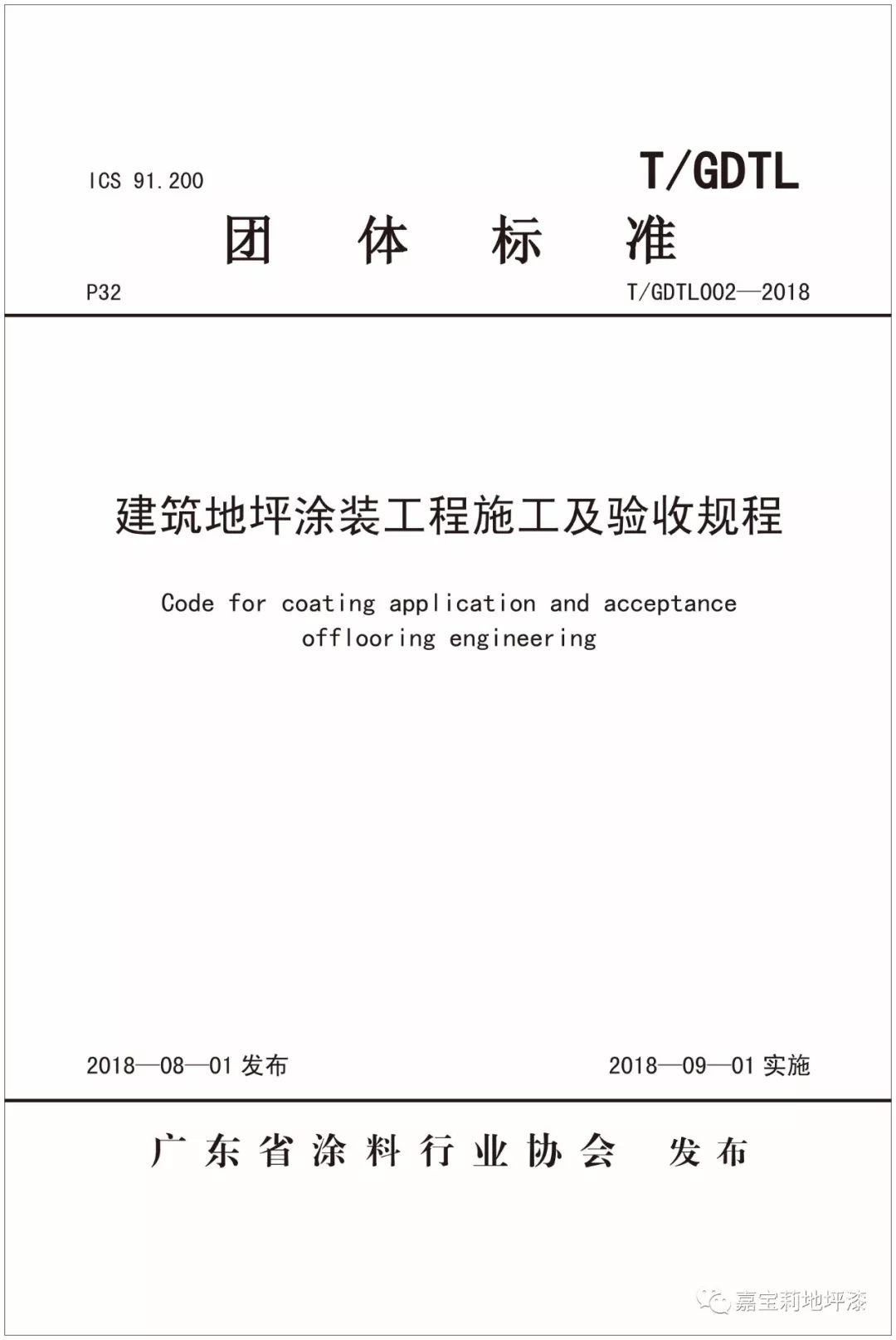 为推广建筑地坪涂装在建设工程中的应用,保障建筑地坪涂装工程的设计、施工质量、促进涂装技术进步、规范施工工艺流程与验收准则,由广东省涂料行业协会主编,我司牵头起草的《建筑地坪涂装工程施工及验收规程》于近期发布、实施。