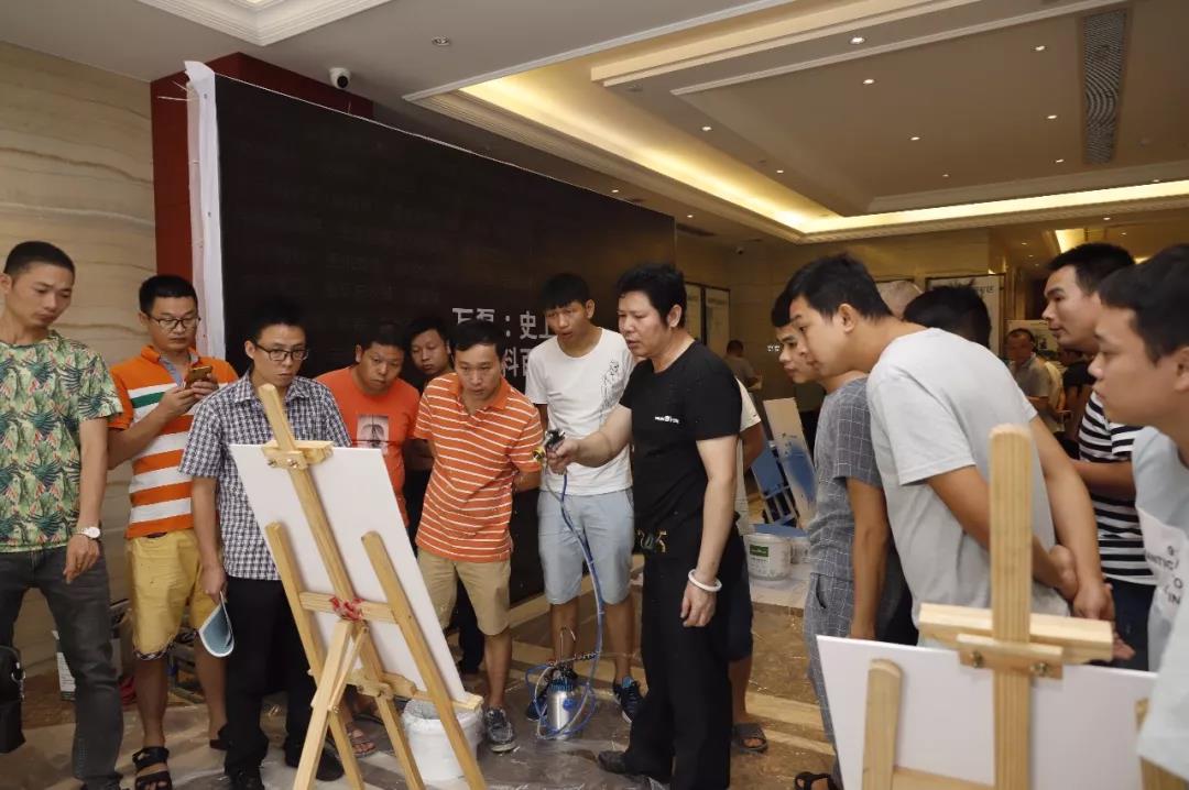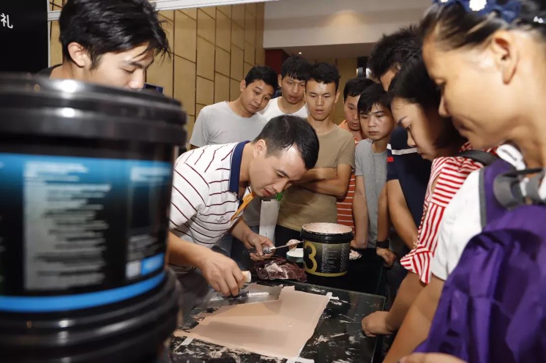 石灰基,天然环保,零添加剂;臻彩莱克斯,绒式质感、色泽温润,两款产品互相辉映,在现场受到了极其热烈的追捧,摊位的每一个角落都是人头!