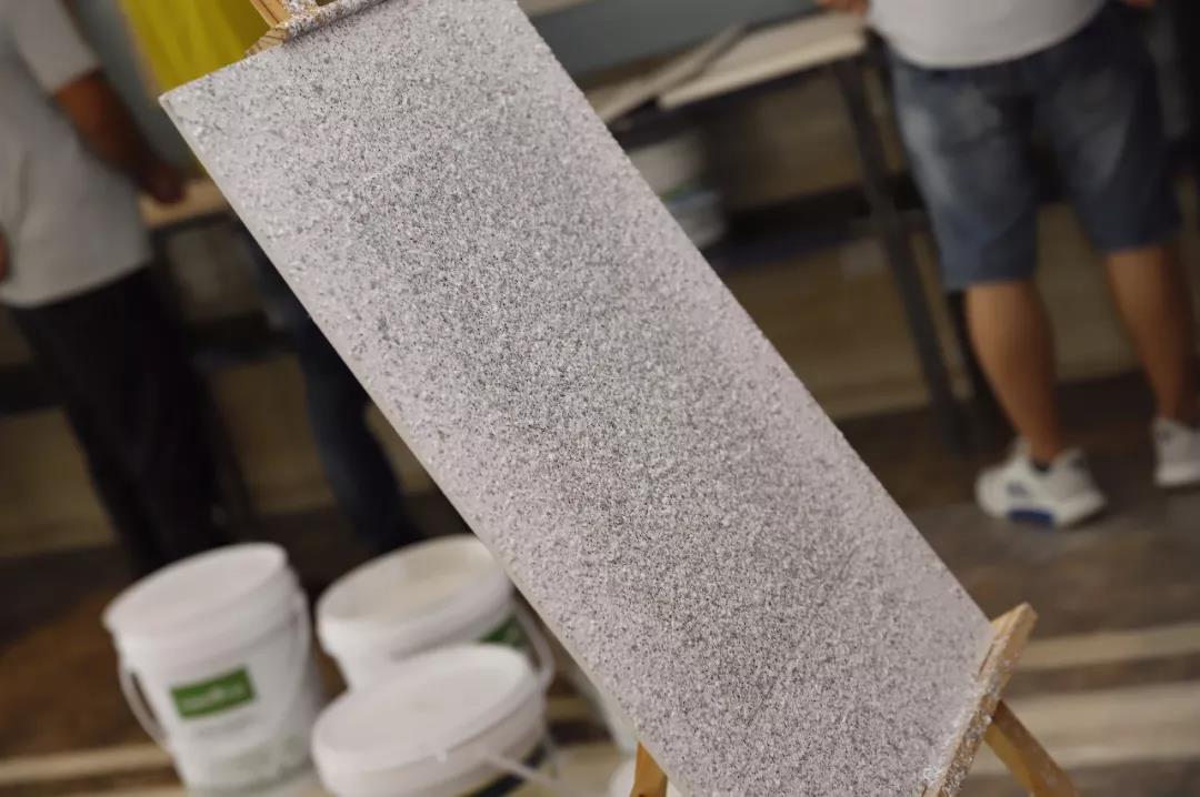 外墙专区展出了彩陶石、凤凰石等畅销产品,更为“水包水&水包砂”及“RB真石漆&原石漆”设置了对比。