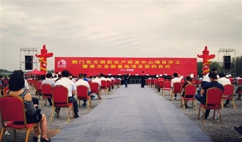 荆门东方雨虹项目开工后,该公司与荆门市政府签订新协议,决定在荆门追加投资,新建南方总部基地。