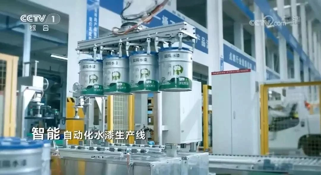 图为CCTV-1广告片中展示的晨阳水漆研发与生产环节