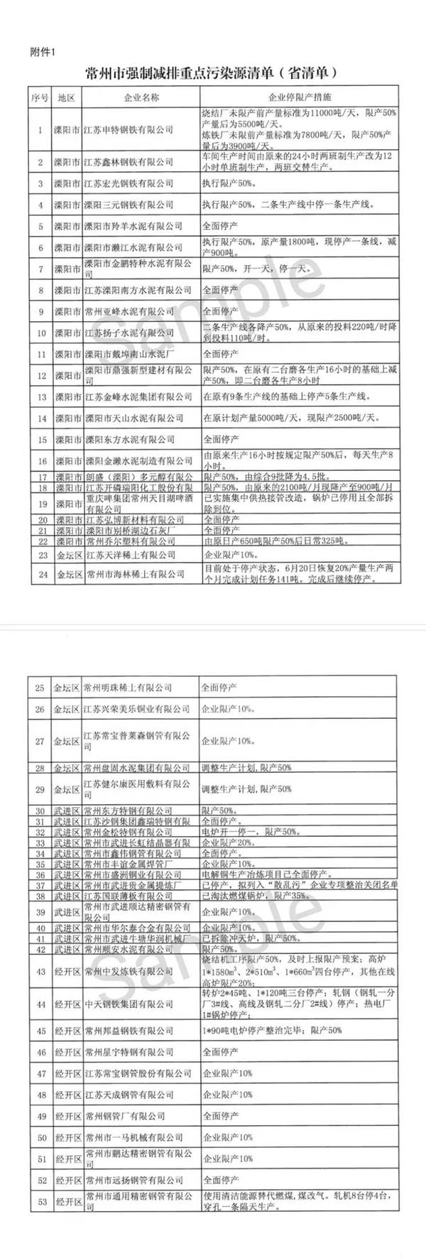 根据核查结果,要求各辖区对名单上确定限产比例的企业,8月3号前要进行具体落实限产措施、责任单位和责任人等方案。