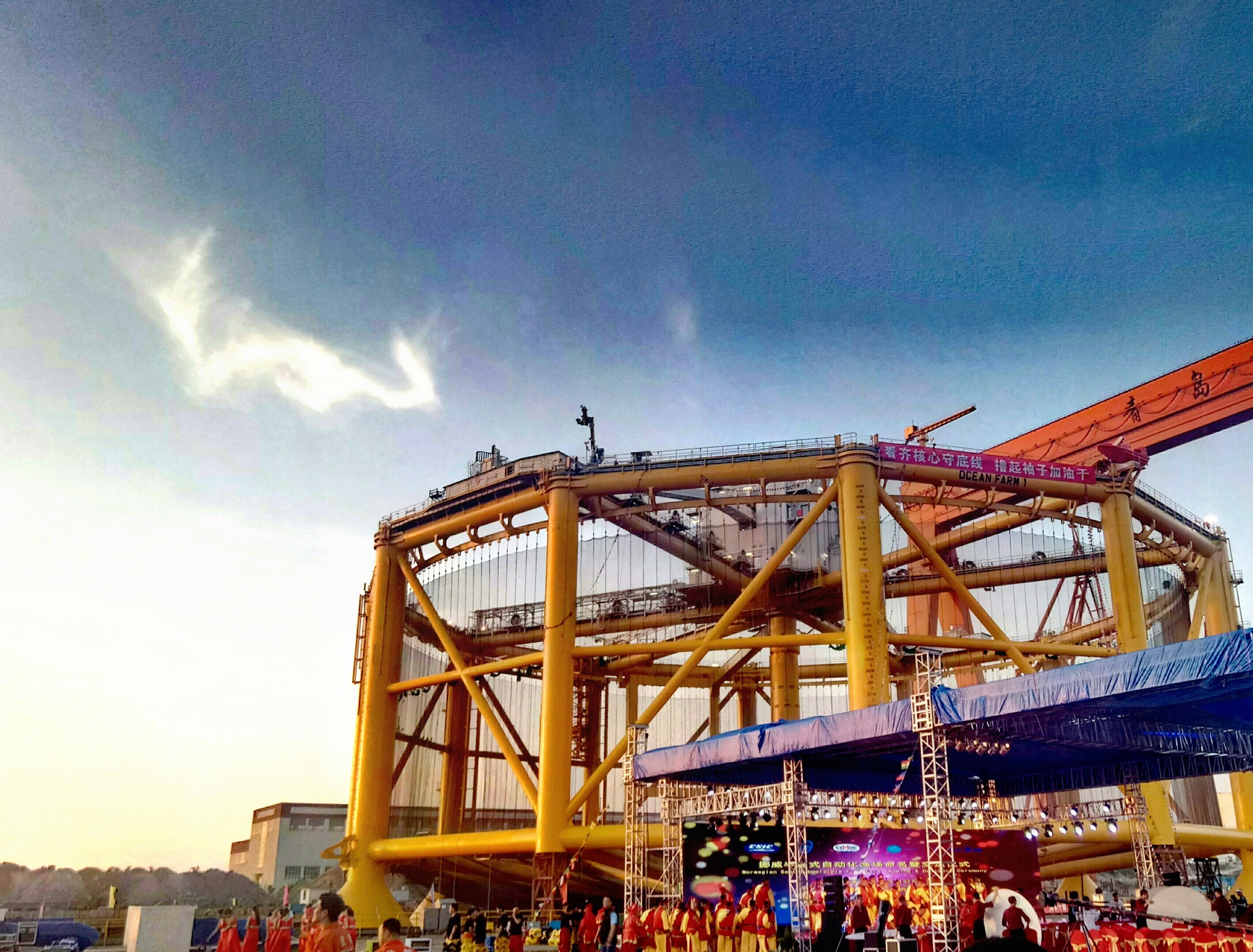 “深蓝1号”由中船重工武船集团旗下湖北海洋工程装备研究院设计建造。该装备呈正八边形结构,高35米,周长180米,可容纳养殖水体5万立方米,一个周期可养育三文鱼30万条,实现产量1500吨。“深蓝1号”的出现将推动养殖技术与装备升级换代,极大拓展经济发展新空间,有效推动渔业养殖向大型装备式养殖转变。
