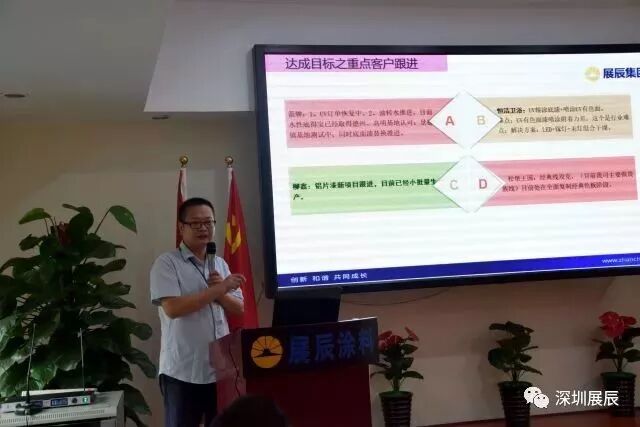 深圳公司财务部易卫华经理对深圳公司1-4月份销售数据发布;业务一部、业务二部、uv水性项目组都取得了优异的成绩。“百舸争流千帆竞,兵贵首胜季季红”。从各位销售精英的工作汇报中可以看出,大家对于今年的销售目标充满信心,与此同时,各级领导也对报告提出了合理化建议,帮助销售人员梳理思路,指出工作中的不足。让接下来的工作方向更加清晰明确!优秀业绩的取得,离不开服务人员的共同努力,人员优化,技术工艺升级,为好的销售提供了后勤保障。