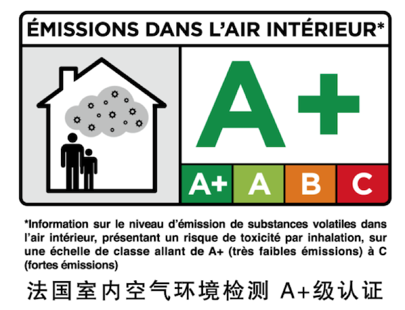 据悉,法国VOC标签是室内建筑进入法国市场强制使用的环保标签,是根据国际标准ISO-16000室内空气的技术规定,模拟人们实际居住的室内环境,通过专业精密仪器持续28天检测涂刷后空间内的空气质量,根据空气中总挥发性有机化合物的浓度及另外十种常见的对人体有危害的有机化合物浓度对产品评级,法国VOC标签最高环保级别为A+,以下为A,B和C。