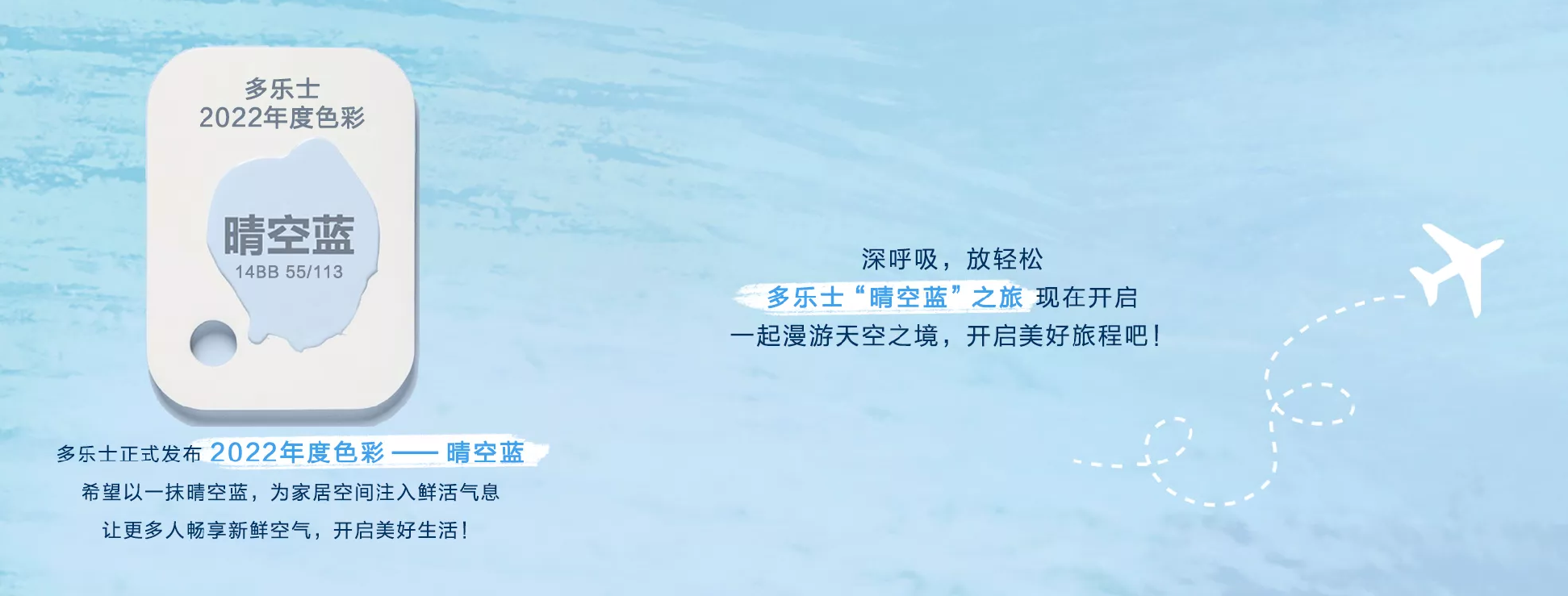 近日,知名涂料品牌多乐士发布了2022年度色彩——晴空蓝,希望以一抹晴空蓝,为家居空间注入鲜活气息,让更多人畅想新鲜空气,开启美好生活。