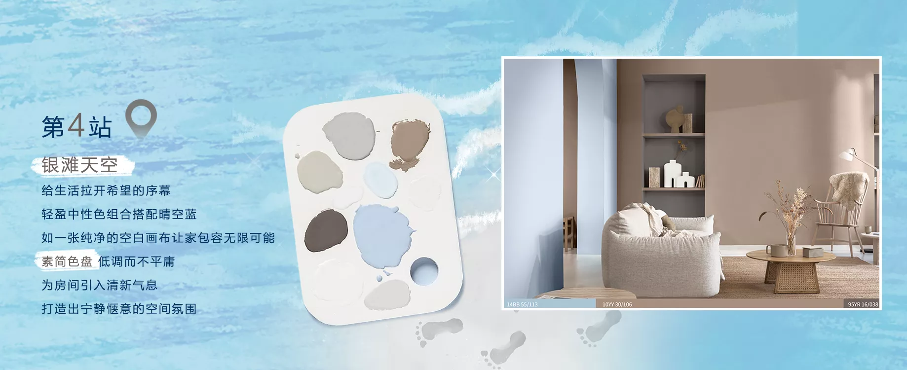 歌手谢春花《只道寻常》有一段歌词:“冬日的小山和耐寒的兰,江水边渔夫返白鹭离滩”,这是一幅多么宁静又和谐的画面。用轻盈的中性色调,在纯净的画布上演绎一番岁月静好,多乐士“素简色盘”搭配晴空蓝,低调而不平庸,彰显的更是“大道至简”的心境。