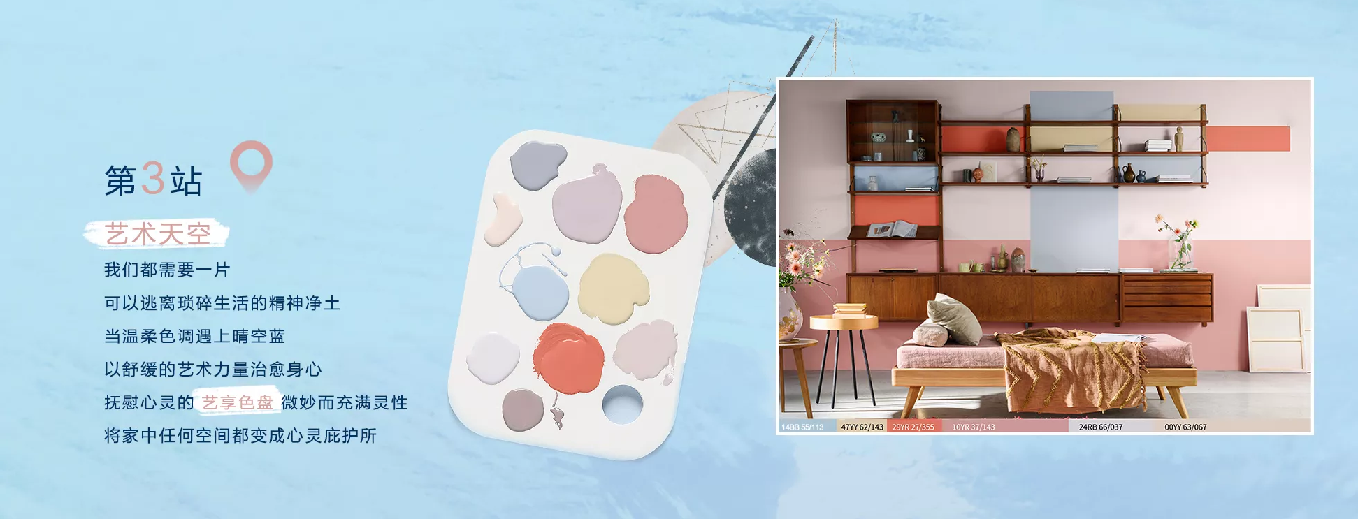 有人说艺术是“天马行空”的想象,我们都需要一片逃离琐碎生活的精神净土。现在起,用多乐士独家打造的“艺享色盘”与最新发布的多乐士2022年度色彩“晴空蓝”轻松pick艺术天空,让家居生活与众不同。