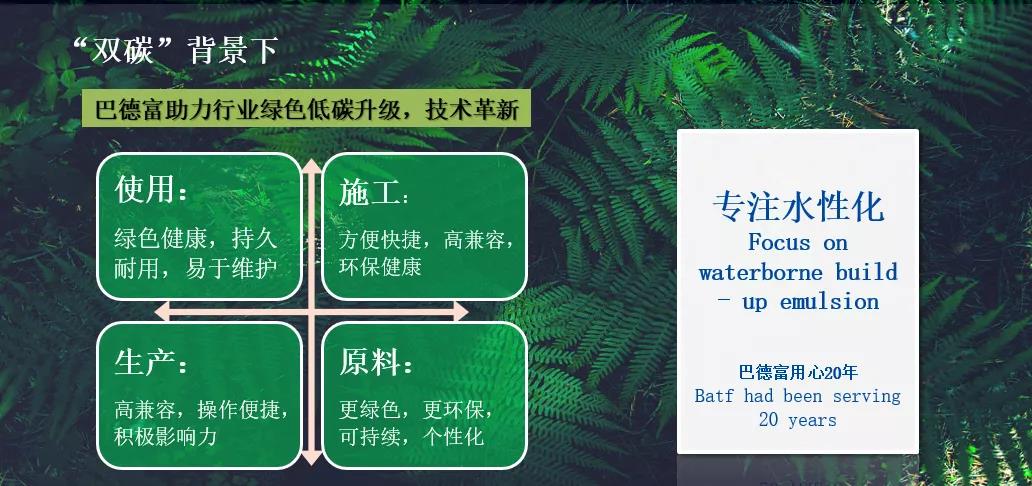 今年以来,中国“建筑乳液销量第一”的巴德富也在国家政策的号召之下,积极响应,与“低碳”同行。